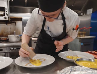 Chef plating food in an Immanuel kitchen